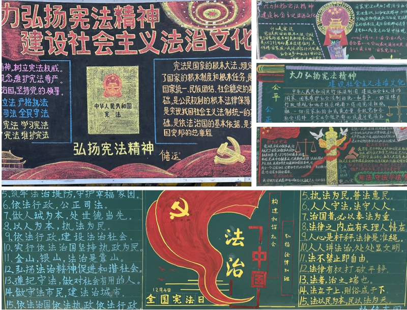 深入开展宪法宣传,营造浓厚学法氛围。为确保宪法宣传系列活动更具特色、更有亮点,宣传氛围更加浓厚,公司法务部和党群部采取“线上+线下”的方式,充分运用QQ工作群、微信群、微视频、电梯间显示屏等媒介平台,大力宣传宪法精神、法治文化。线上,通过中国普法微信公众号共同参与“宪法宣传周答题”活动,全员学“法”理、增“法”智,答题覆盖率达到100%。线下,举办以“大力弘扬宪法精神,建设社会主义法治文化”为主题的黑板报评比活动。各单位以黑板报这一“小版面”,展现其在宣传教育的“大能量”,让宪法精神深入人心,让宪法意识凝心聚力,让尊法学法守法用法在物产工投公司蔚然成风。