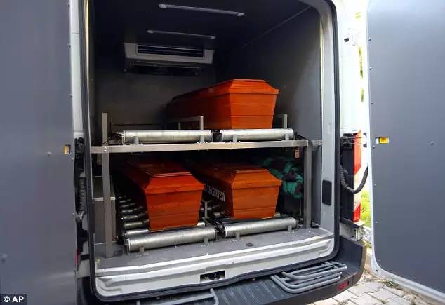 装着Aylan和哥哥Galip、母亲Rehan的三副灵柩