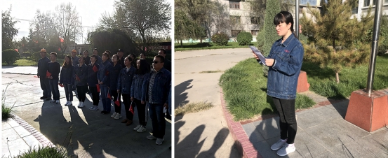 上午9时整,升起仪式正式开始,激昂的《义勇军进行曲》庄严响起,擎旗手挥臂扬起,五星红旗冉冉升起。全体团员青年面向国旗列队并行注目礼,共同祝愿伟大祖国繁荣富强,祝福物产明天更加灿烂美好。