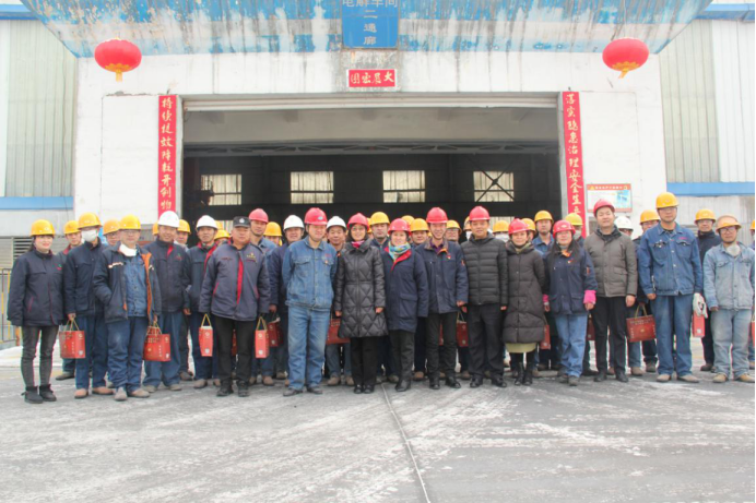 除夕下午,公司党委书记、董事长、总经理张允忠同志及公司党政班子成员一行来到车间、班组,看望慰问坚守在生产作业一线干部职工,并代表公司党委、行政和公司工会送上诚挚的问候和新春的祝福,希望大家在本职岗位上的踏实工作,发扬爱岗敬业、无私奉献的精神,为节日期间安全生产提供坚强保障。