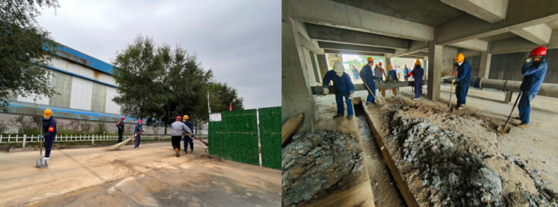 看着整洁的地面和自己身上满是灰土的工作服,“先锋队”成员说道:“脏点累点我们都不怕,衣服脏了干完活再换就行,只要能为公司疫情防控和生产经营出点力就好”。