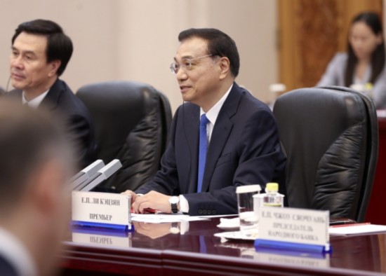 李克强总理会见乌兹别克斯坦总统卡里莫夫时说:"中乌可以在双方感兴趣的领域广泛开展产能和装备制造业合作。"