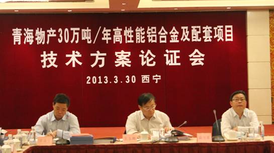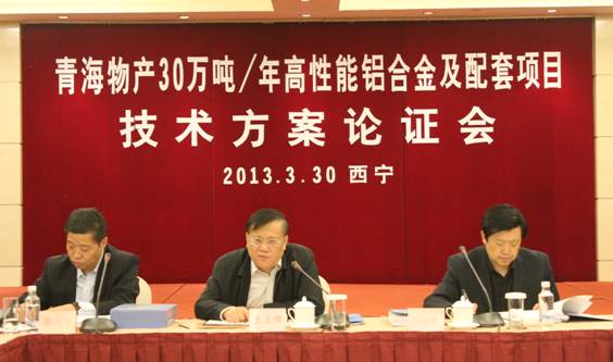 青海物产工业投资有限公司30万吨/年高性能铝合金及配套项目技术方案论证会于2013年3月30日-31日在青海西宁召开,省物产集团总公司总经理王玉辉、党委书记白家林、北川工业园管委会副主任薛万革、铝合金、炭素行业的9位特邀专家,物产工投高级经济师常海宁、西北铝高级工程师张学平、瑞敏教授级高工黄金法、云南云铝高级工程师车立志、东方希望教授级高工王坚、青海鑫恒高级工程师王雄、青海黄河再生铝高级工程师陈蒲明、甘肃索通炭素高级工程师陈卫国、物产工投高级工程师薛玉贵、贵阳铝镁设计研究院党委书记吕维宁、副院长宁前进、沈阳铝镁设计研究院副院长刘敬及相关主设人员、项目建设单位代表等共53人参加了会议。专家委员会推选由常海宁担任主任委员、张学平担任副主任委员。